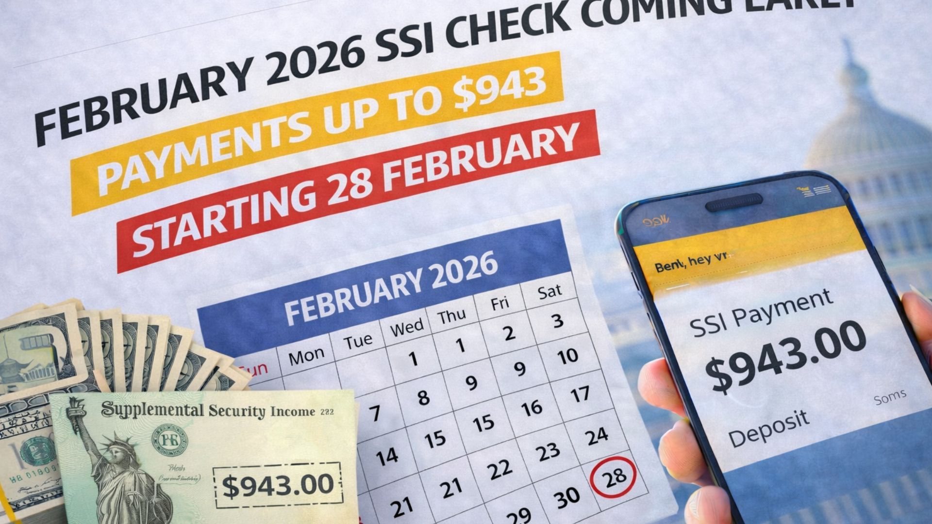 February 2026 SSI Check Coming Early — Payments Up to $943 Starting 28 February